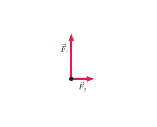 Redraw the diagram the figure shows two forces acting on an object at rest. Add a third force that will cause the object to remain at rest. label the new force f⃗ 3 . Draw the vector starting at the black dot.
