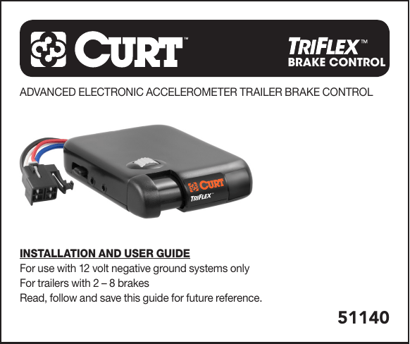 • Brake control connection harness, supplied with the tow vehicle (if equipped) • CURT quick plug - custom connector for specific vehicles. See catalog for availability •CURT part# 51515 - male quick plug with pigtails •CURT part# 51500 - brake control wiring kit Key Features • Display shows provides detailed brake force output