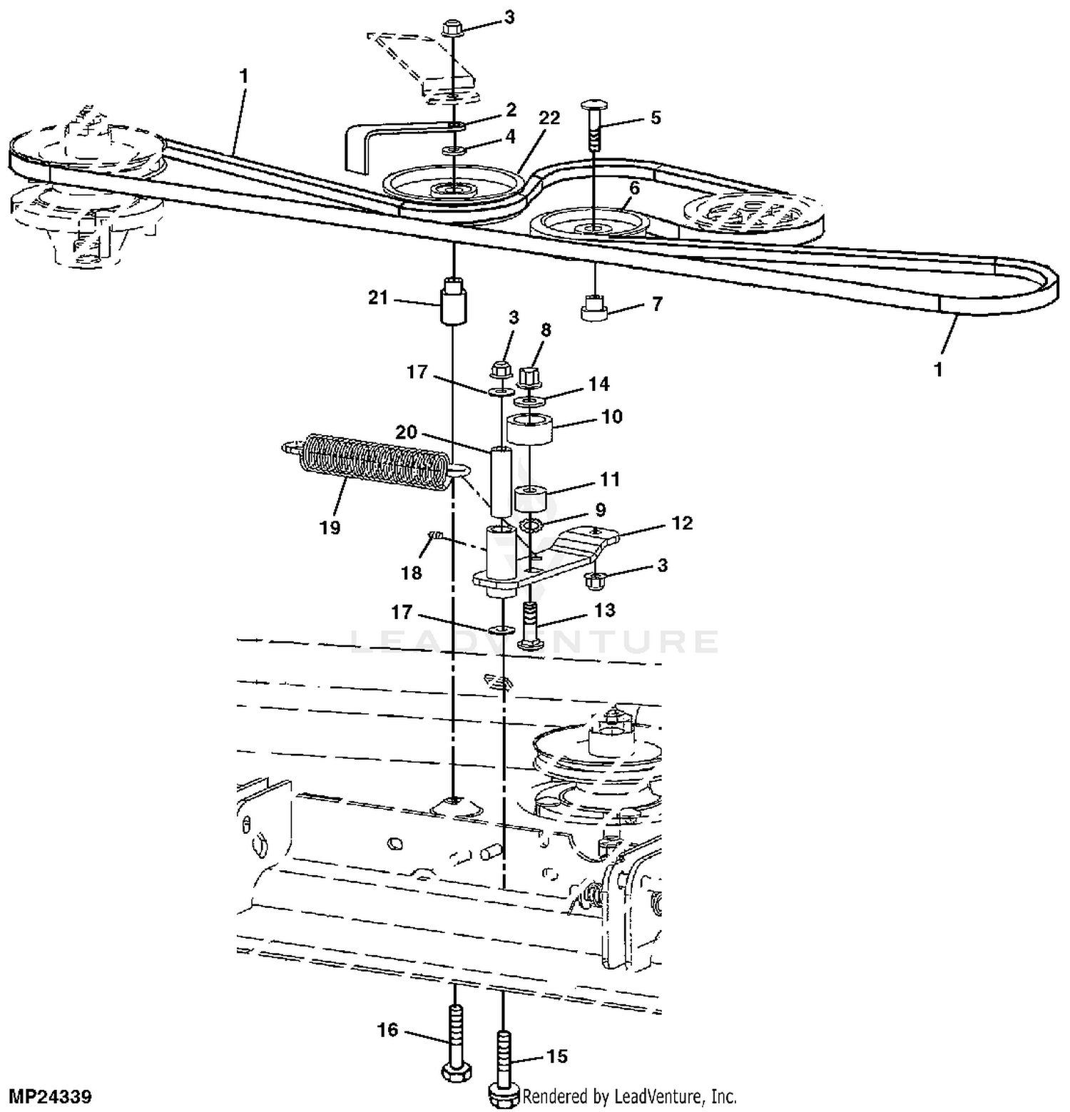 The John Deere 48 mower deck belt pattern diagram can be obtained from most John Deere dealerships. Many times when you purchase the belt the parts store will give you a belt pattern diagram. 11 Jun 2018 — Thanks so much. That will work great!!! John Deere 955 60" Deck Westendorf FE Loader for pictures and descriptions of drive belt and deck belt on John Deere STX38 and STX46 tractor with black deck. Posted on Oct 22, 2009.