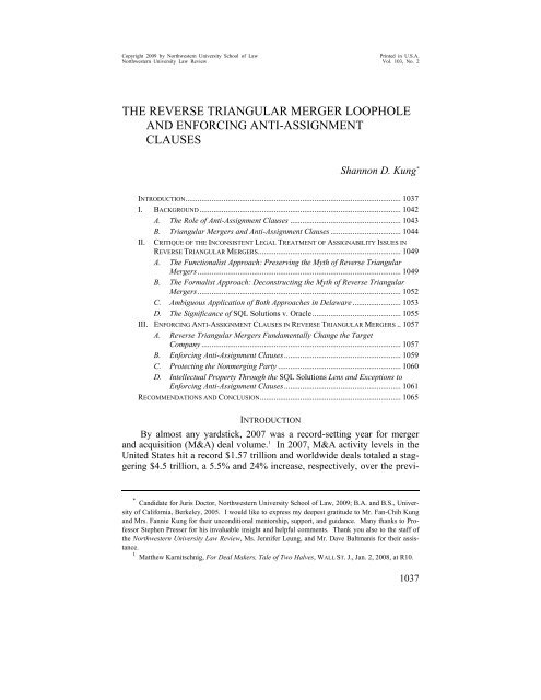 PDF Structuring Reverse and Forward Triangular Mergers Reverse Triangular Merger Target survives Traditional practitioners' view: no assignment, subject to exceptions (e.g. California-related reverse triangular merger may trigger anti-assignment and anti-transfer clauses in light of SQL Solutions v. Oracle) Change of control provisions may be triggered 23 ANTI-ASSIGNMENT CLAUSES IN TRIANGULAR MERGERS