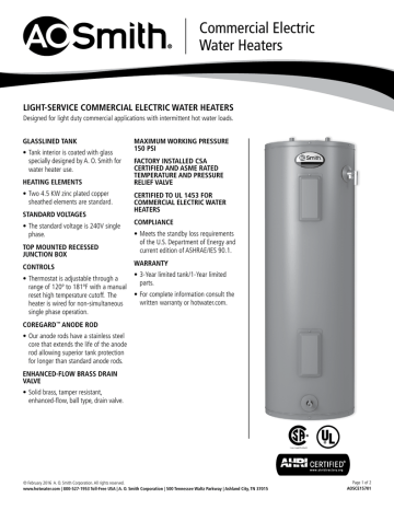 AO Smith Commercial Electric Water Heaters - DocShare.tips AO Smith Commercial Electric Water Heaters. AO Smith Commercial Electric Water Heaters. Published on 1 hour ago | Categories: Documents | Downloads: 0 | Comments: 0 ...