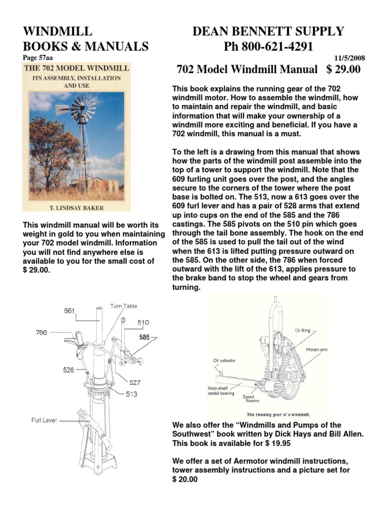 702 Parts List & Diagrams - Aermotor-Parts.Com Now you you can download complete copies of vintage Aermotor 602 or 702 Installation, Operating & Maintenance Instructions, Aermotor Tower Assembly Instructions or Parts Diagrams, plus 602 & 702 Parts Diagrams ALL FOR FREE ....all courtesy of the people at Windmill-Parts.com . These are simple PDF downloads that will print nice quality copies ...