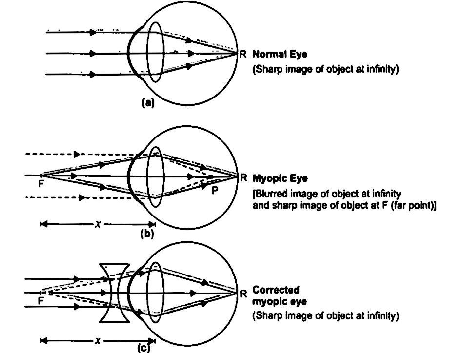 Draw a ray diagram to show the formation of the image in a ... Best answer Myopia or shortsightedness: Myopia is the defect of eye in which a person can see only nearby objects, but fails to see the far away objects distinctly. This defect is due to (a) decrease in focal length of the eye lens. (b) spreading of the eye-sphere. Due to these reasons the image is formed in front of the retina.
