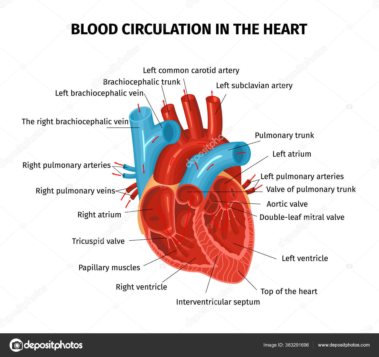 Blood Flow of Human Heart Diagram Stock Vector - Illustration of ... Heart blood flow vector illustration. Labeled cardiology system explanation. Capillary schematic, anatomical vector illustration diagram with blood flow. Normal blood flow in the vein. Blood cells white blood cells, red blood cells, platelets in plasma circulate inside the vein. Hu. › hearHeart Information Center: Heart Anatomy | Texas Heart Institute The Heart Valves. Four valves regulate blood flow through your heart: The tricuspid valve regulates blood flow between the right atrium and right ventricle. The pulmonary valve controls blood flow from the right ventricle into the pulmonary arteries, which carry blood to your lungs to pick up oxygen. Blood Flow of Human Heart Diagram Stock Vector - Illustration of health ... Illustration about Blood flow of human heart diagram illustration. Illustration of health, girl, learn - 208659386