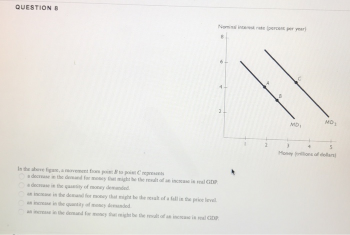 On the diagram to the right, a movement from A to B ... On the diagram to the right, a movement from A to B represents a O A. change in demand O B. decrease in demand O C. movement up the demand curve O D. change in quantity demanded Question : On the diagram to the right, a movement from A to B represents a O A. change in demand O B. decrease in demand O C. movement up the demand curve O D. change ...